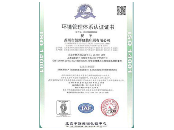 環(huán)境管理體系認(rèn)證證書